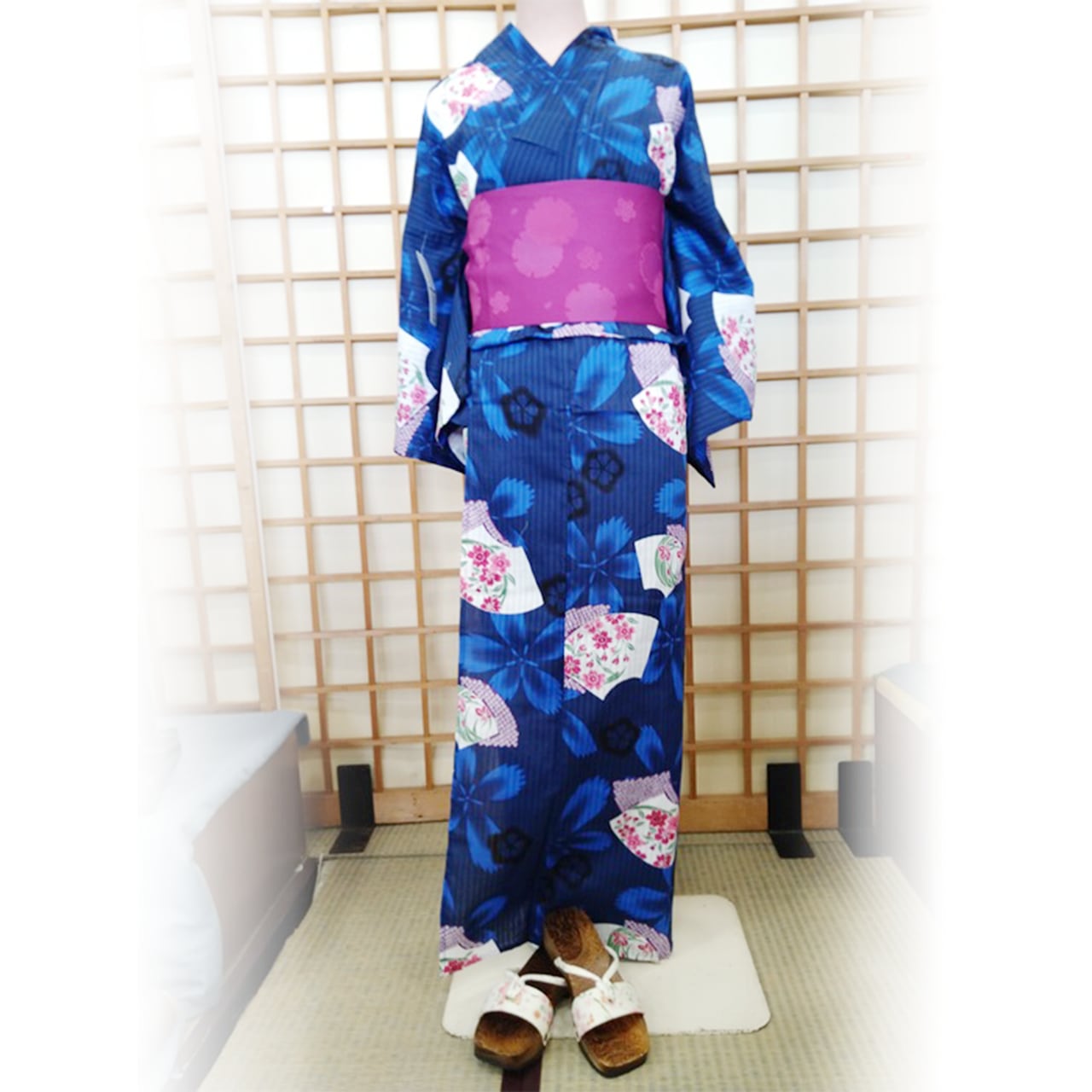 《素材》浴衣 綿・帯 ポリエステル・下駄 鼻緒…綿・台…桐